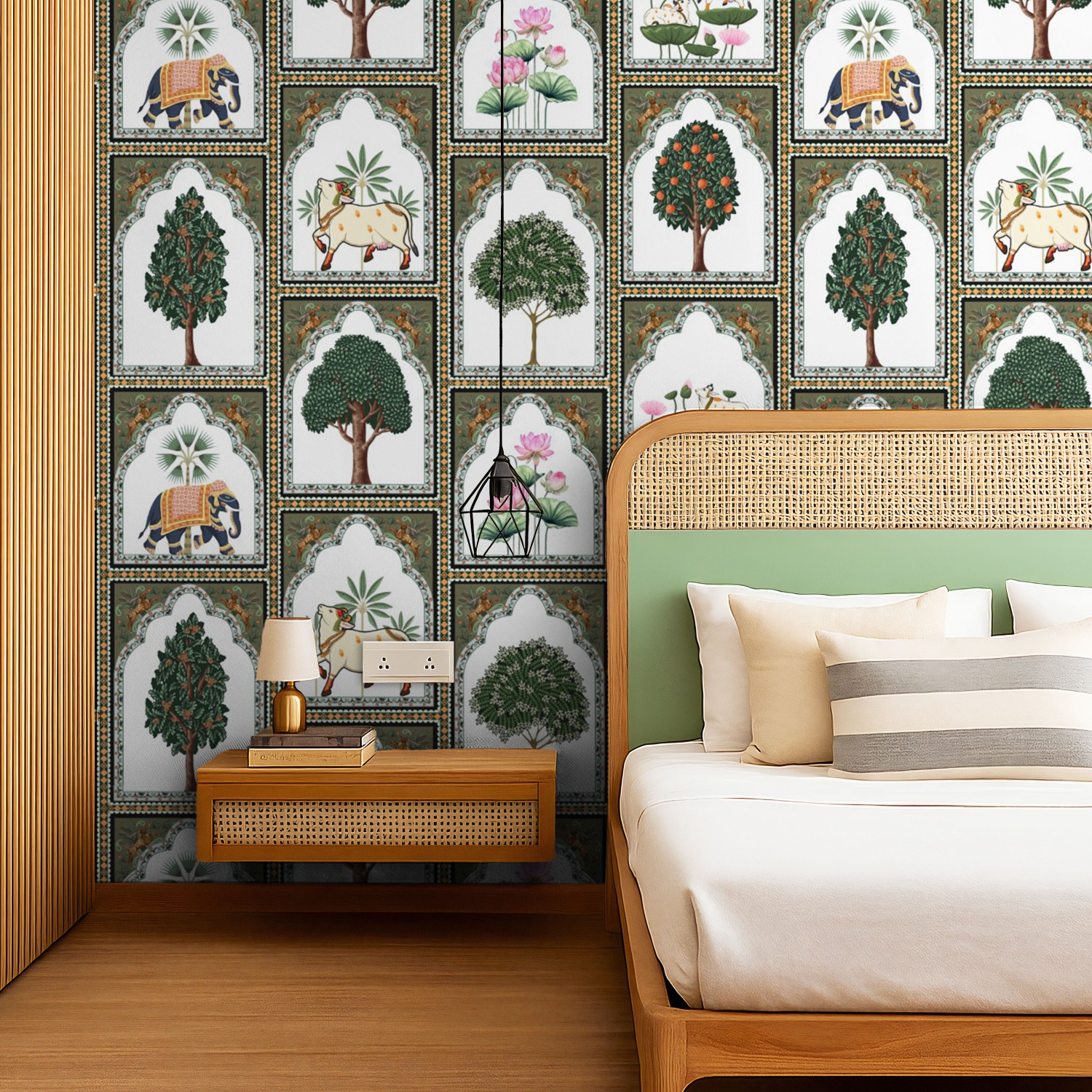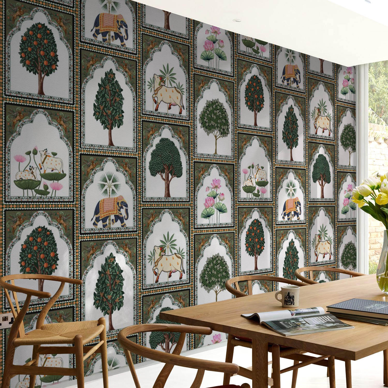 Luxury Wallpaper | Verdant Harmony Tapestry: A Journey Through Vibrant Archways | Certified Non Toxic • 14+ Textures • Free Installation